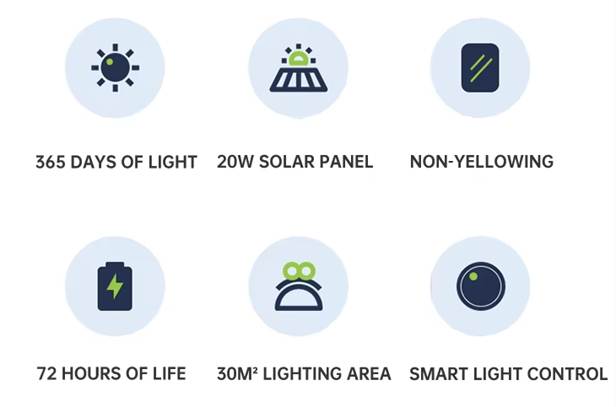 Panel solar monocristalino de alta eficiencia, batería LiFePO4 de larga vida útil y chip LED Philips de alto brillo integrados en un diseño elegante y robusto.
