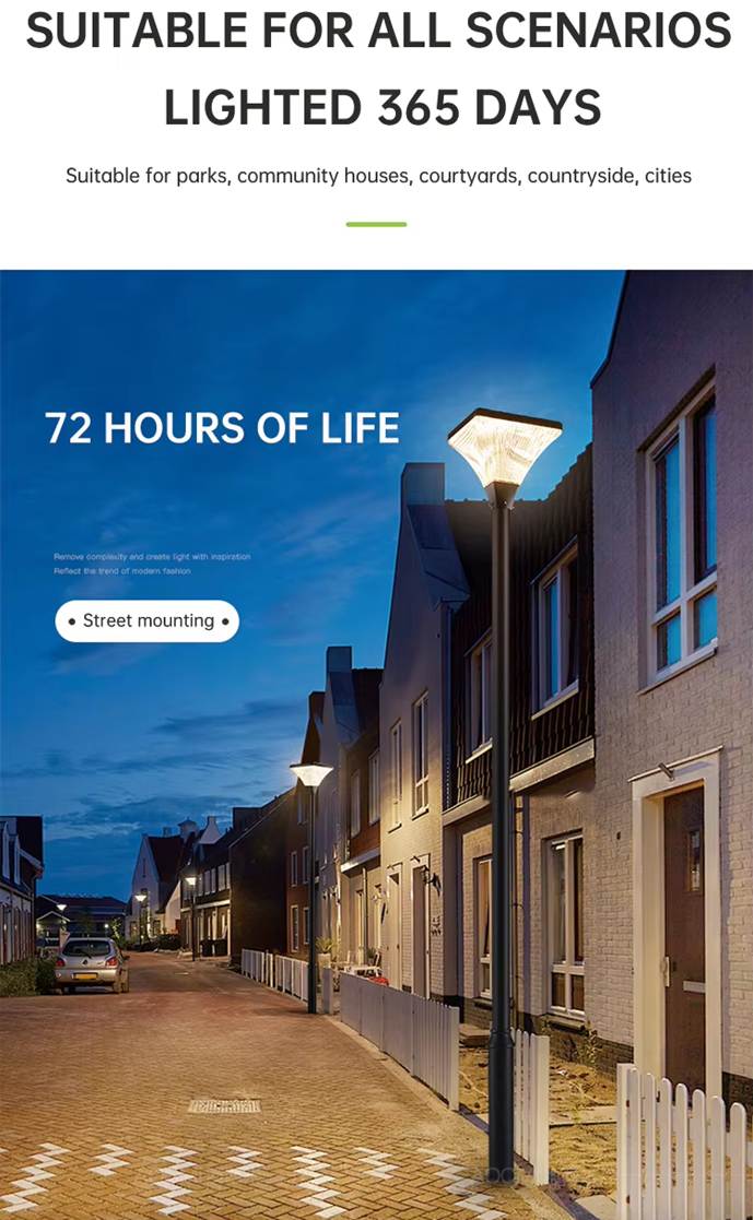 Iluminación potente y autónoma para calles, parques, jardines y caminos privados. Sin cables, sin obra civil y sin coste eléctrico.
